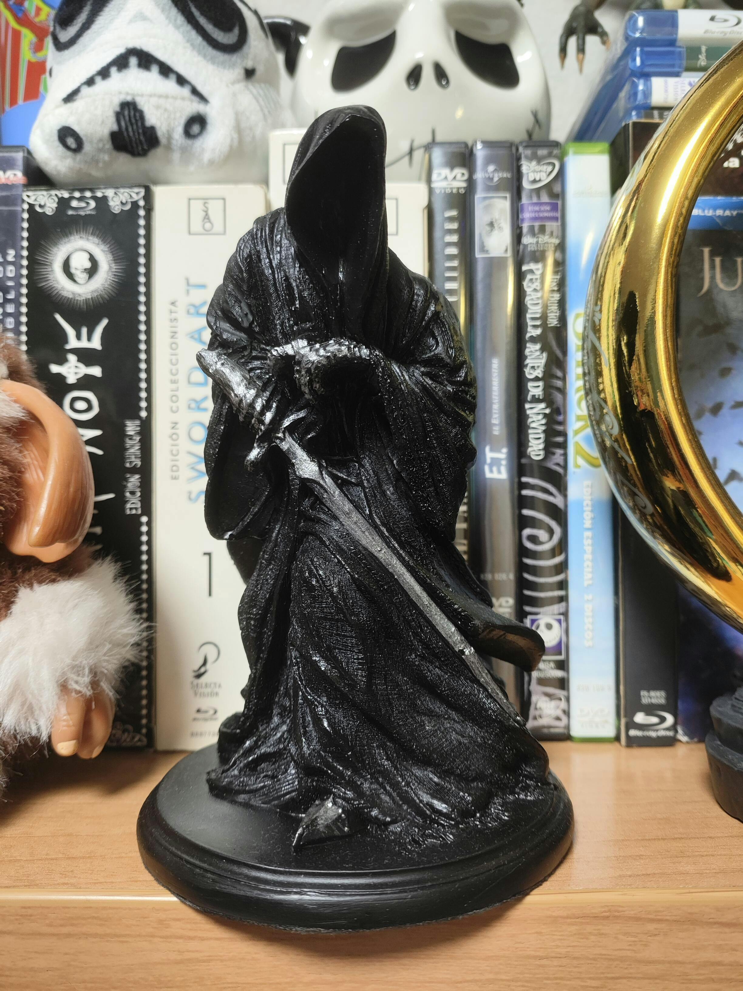 • Figura de resina de un espectro Nazgûl encapuchado, tal y como aparece en la Cima de los Vientos en la primera película de El Señor de los Anillos.